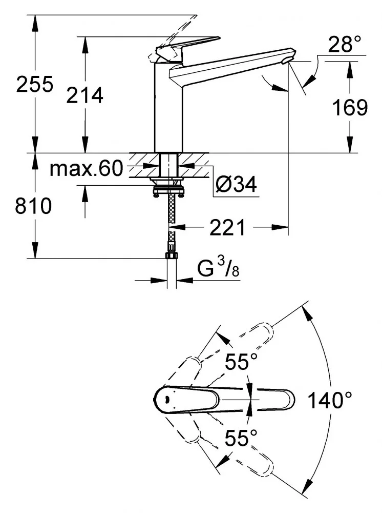 Смеситель для кухни GROHE Eurodisc Cosmopolitan, монтаж перед окном (33312002)
