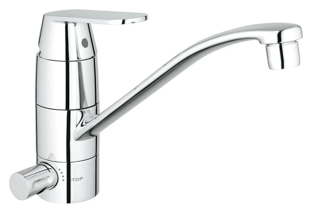Если Вам необходим смеситель для кухни со встроенным запорным клапаном и Вы предъявляете к нему такие требования, как долговечность, простота в уходе и доступная цена, то Eurosmart Cosmopolitan идеально Вам подойдет. Этот однорычажный смеситель позволяет управлять потоком воды усилием одного пальца за счет передовой технологии, по которой изготовлен картридж, а также не отнимает много времени при уборке: хромированное покрытие GROHE StarLight® достаточно протирать салфеткой из микрофибры, чтобы оно всегда сияло как новое. С помощью встроенного в этот смеситель запорного клапана Вы сможете надежно перекрывать подачу воды к посудомоечной машине, когда это необходимо. Превосходное качество этого смесителя для кухни Eurosmart Cosmopolitan – функционального, эстетичного и доступного – подтверждается восторженными отзыВами множества довольных пользователей.