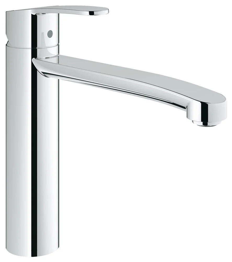 Eurostyle Cosmopolitan Смеситель однорычажный для мойки, DN 15 для монтажа перед окном средний излив монтаж на одно отверстие GROHE StarLight хромированная поверхность GROHE SilkMove® керамический картридж 35 мм аэратор регулировка расхода воды поворотный трубкообразный излив область поворота 140° гибкая подводка