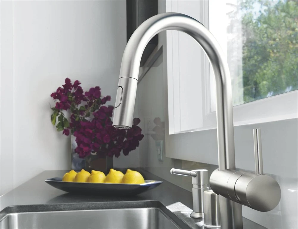 - GROHE EasyDock Легкое вытягивание и возврат на место выдвижного излива