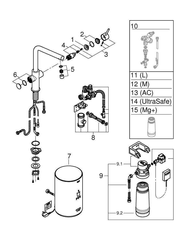 - GROHE ChildLock кнопка для безопасного открывания кипящей воды