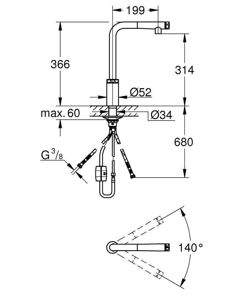 Купить Смесители для кухни производства GROHE (Германия), коллекция Vento, код товара: 263916 можно выгодно в Сантемо.ру:
