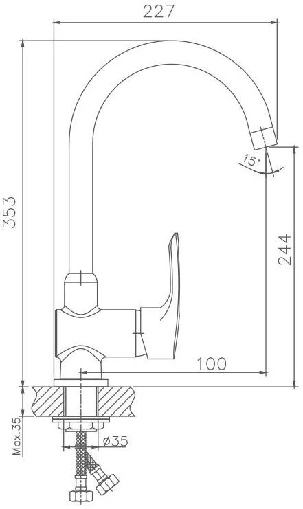 Смеситель для кухни бренда Haiba. Изготовлен из латуни. Картридж 40 мм. Укомплектован аэратором. Гибкая подводка 40 см. С поворотным изливом.
