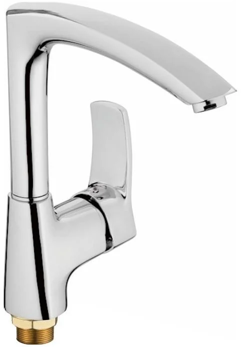 Смеситель для кухни бренда Haiba. Изготовлен из латуни. Картридж 40 мм. Укомплектован аэратором. Гибкая подводка 40 см. С поворотным изливом.
