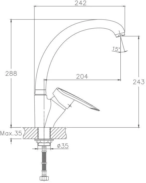 Смеситель для кухни бренда Haiba. Изготовлен из латуни. Картридж 40 мм. Укомплектован аэратором. Гибкая подводка 40 см. С поворотным изливом.