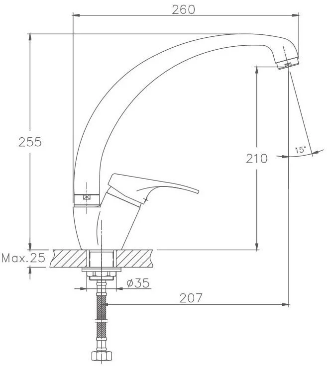 Смеситель для кухни бренда Haiba. Изготовлен из латуни. Картридж 35 мм. Укомплектован аэратором. Гибкая подводка 40 см. С поворотным изливом.