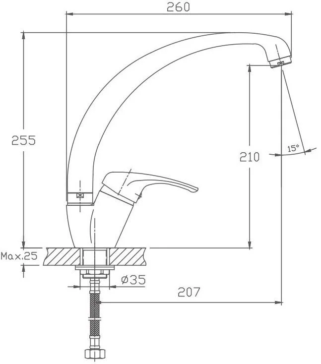 Смеситель для кухни бренда Haiba. Изготовлен из латуни. Картридж 35 мм. Укомплектован аэратором. Гибкая подводка 40 см. С поворотным изливом.