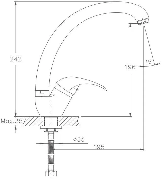 Смеситель для кухни бренда Haiba. Изготовлен из латуни. Картридж 35 мм. Укомплектован аэратором. Гибкая подводка 40 см. С поворотным изливом.