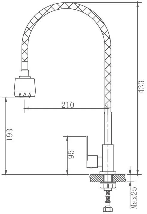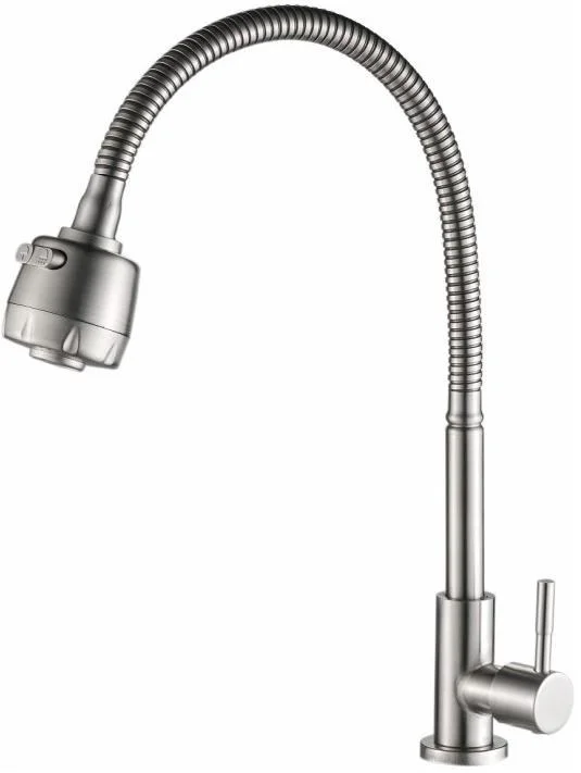Смеситель для кухни бренда Haiba. Изготовлен из нержавеющей стали. Картридж 35 мм. Укомплектован аэратором. Гибкая подводка 40 см. С поворотным изливом.