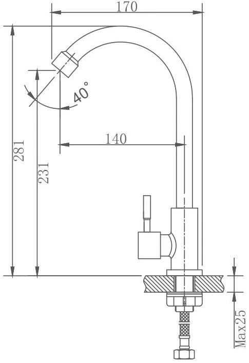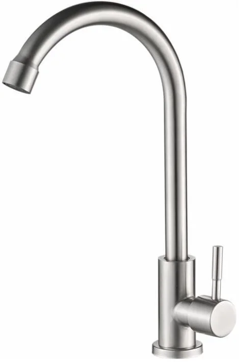 Смеситель для кухни бренда Haiba. Изготовлен из нержавеющей стали. Картридж 35 мм. Укомплектован аэратором. Гибкая подводка 40 см. С поворотным изливом.