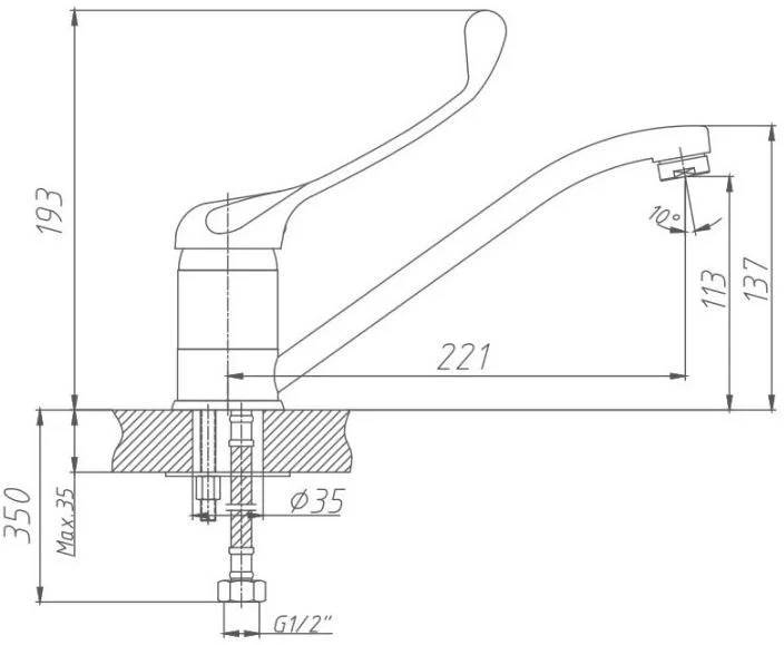 Смеситель для кухни бренда Haiba с хирургической ручкой. Изготовлен из латуни. Картридж 40 мм. Укомплектован аэратором. Гибкая подводка 40 см. С поворотным изливом.