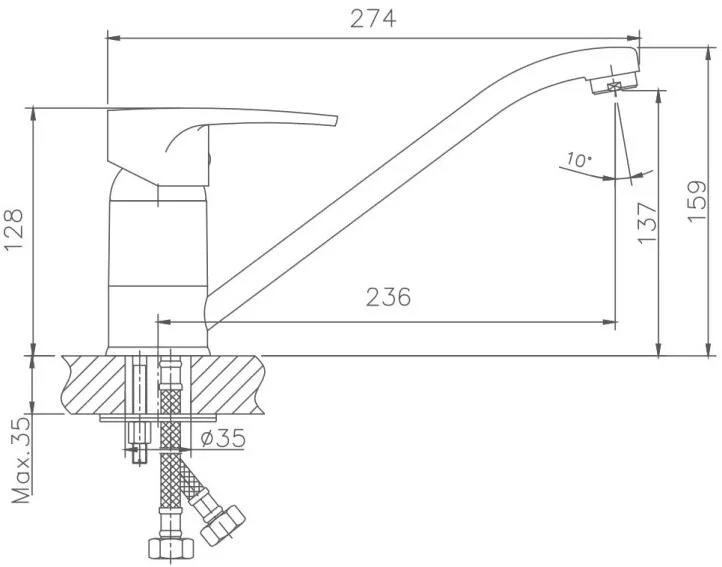 Смеситель для кухни бренда Haiba. Изготовлен из латуни. Картридж 40 мм. Укомплектован аэратором. Гибкая подводка 40 см. С поворотным изливом.