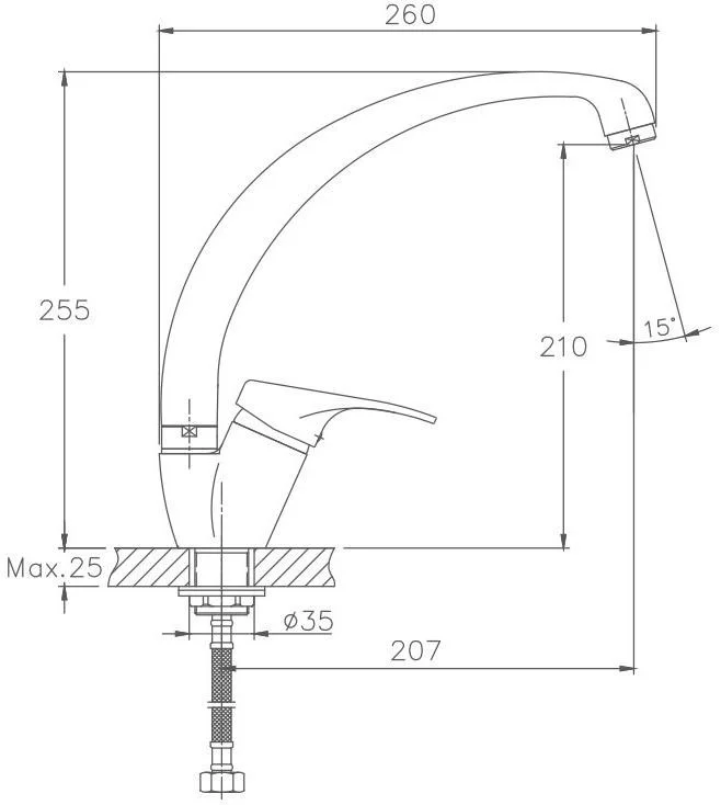 Смеситель для кухни бренда Haiba. Изготовлен из латуни. Картридж 35 мм. Укомплектован аэратором. Гибкая подводка 40 см. С поворотным изливом.