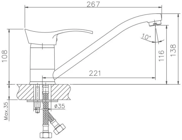 Смеситель для кухни бренда Haiba. Изготовлен из латуни. Картридж 40 мм. Укомплектован аэратором. Гибкая подводка 40 см. С поворотным изливом.