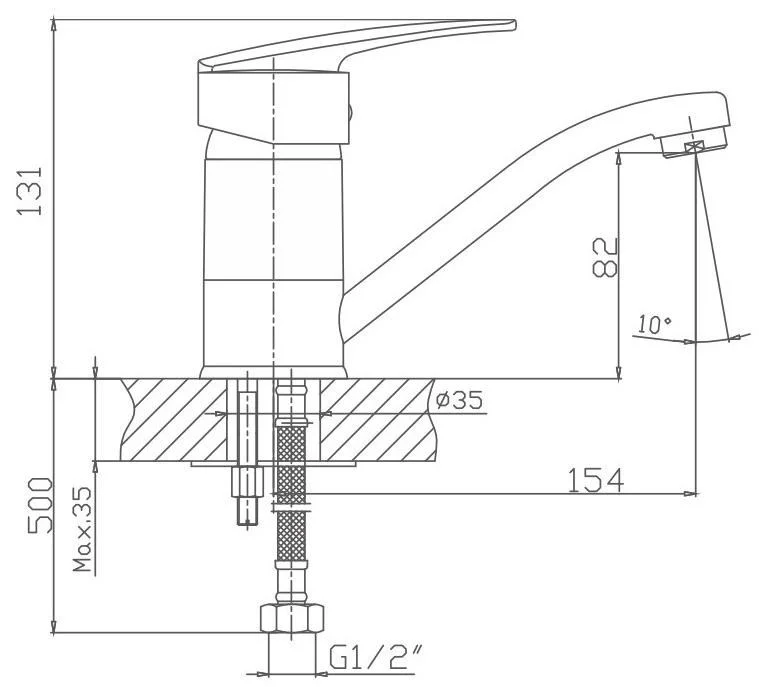 Высота излива, мм