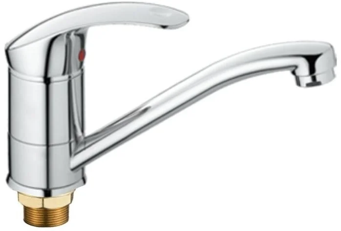 Смеситель для кухни бренда Haiba. Изготовлен из латуни. Картридж 40 мм. Укомплектован аэратором. Гибкая подводка 40 см. С поворотным изливом.