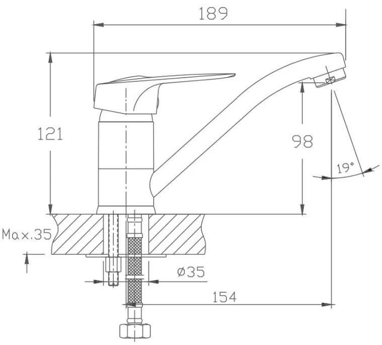 Смеситель для кухни бренда Haiba. Изготовлен из латуни. Картридж 35 мм. Укомплектован аэратором. Гибкая подводка 40 см. С поворотным изливом.