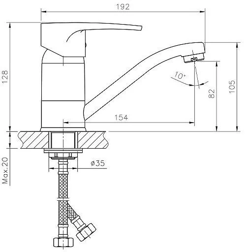 Смеситель для кухни бренда Haiba. Изготовлен из латуни. Картридж 40 мм. Укомплектован аэратором. Гибкая подводка 40 см. С поворотным изливом.