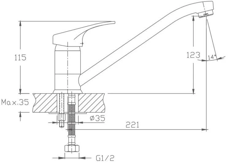 Смеситель для кухни бренда Haiba. Изготовлен из латуни. Картридж 35 мм. Укомплектован аэратором. Гибкая подводка 40 см. С поворотным изливом.