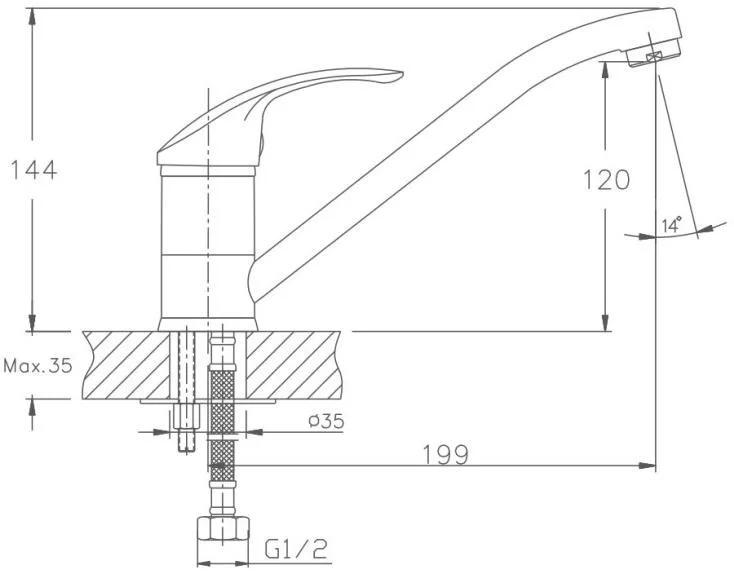 Смеситель для кухни бренда Haiba. Изготовлен из латуни. Картридж 35 мм. Укомплектован аэратором. Гибкая подводка 40 см. С поворотным изливом.