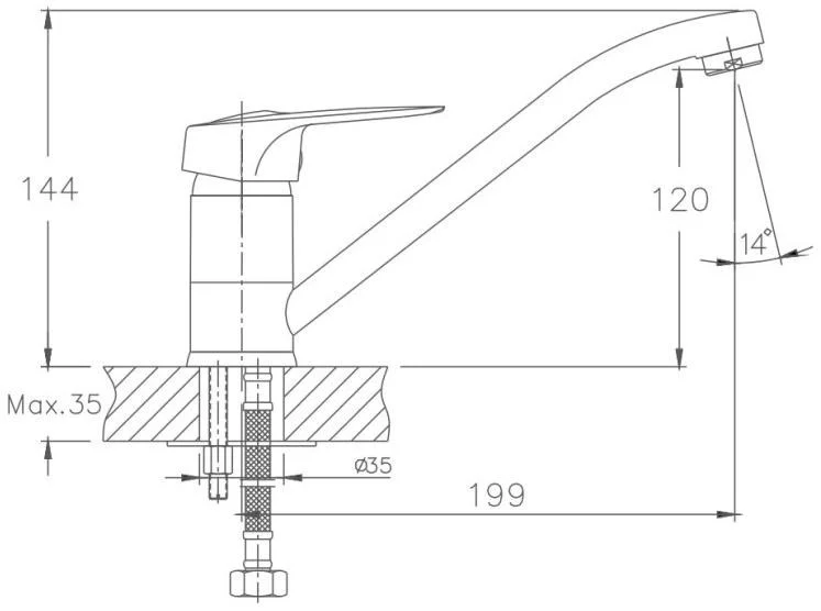 Смеситель для кухни бренда Haiba. Изготовлен из латуни. Картридж 35 мм. Укомплектован аэратором. Гибкая подводка 40 см. С поворотным изливом.