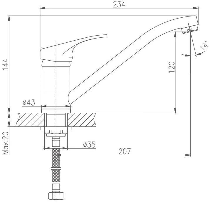Смеситель для кухни бренда Haiba. Изготовлен из латуни. Картридж 35 мм. Укомплектован аэратором. Гибкая подводка 40 см. С поворотным изливом.