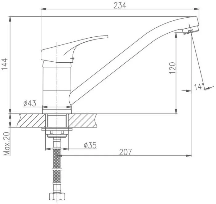Смеситель для кухни бренда Haiba. Изготовлен из латуни. Картридж 35 мм. Укомплектован аэратором. Гибкая подводка 40 см. С поворотным изливом.