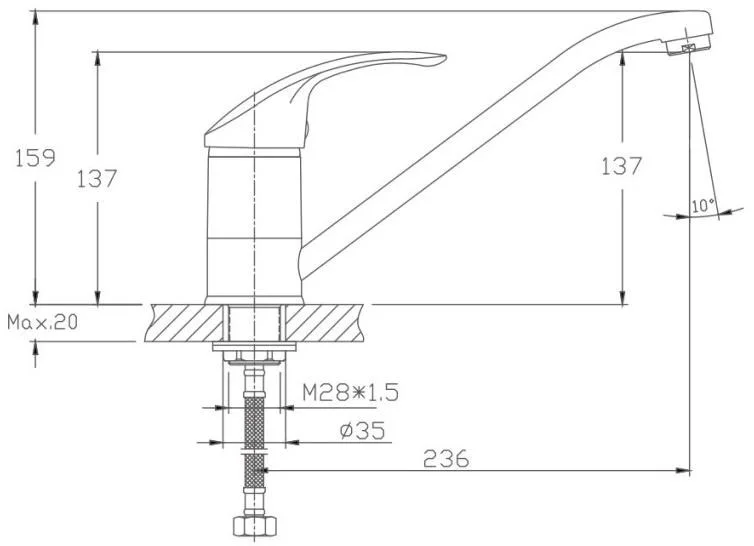 Смеситель для кухни бренда Haiba. Изготовлен из латуни. Картридж 35 мм. Укомплектован аэратором. Гибкая подводка 40 см. С поворотным изливом.