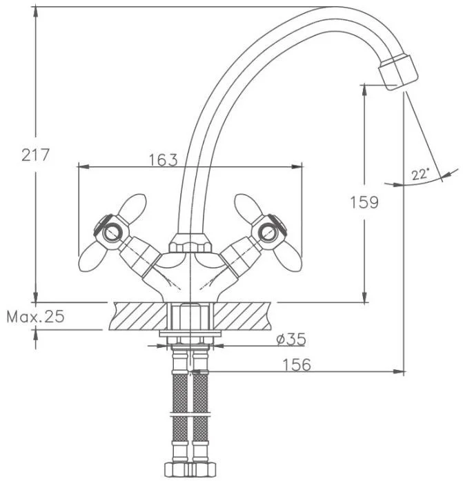 Смеситель для кухни бренда Haiba. Изготовлен из латуни. Укомплектован аэратором. Гибкая подводка 40 см. С поворотным изливом.