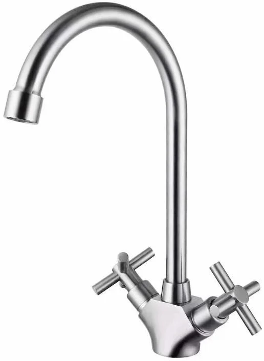 Смеситель для кухни бренда Haiba. Изготовлен из нержавеющей стали. Укомплектован аэратором. Гибкая подводка 40 см. С поворотным изливом.
