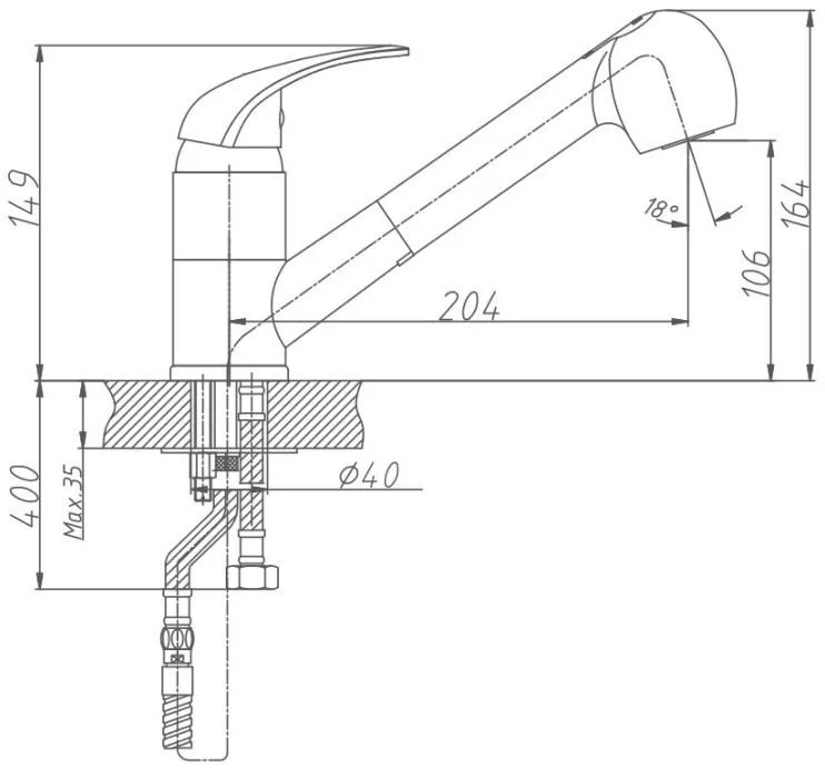 Смеситель для кухни бренда Haiba. Изготовлен из латуни. Картридж 40 мм. Укомплектован аэратором. Гибкая подводка 40 см. С поворотным изливом.