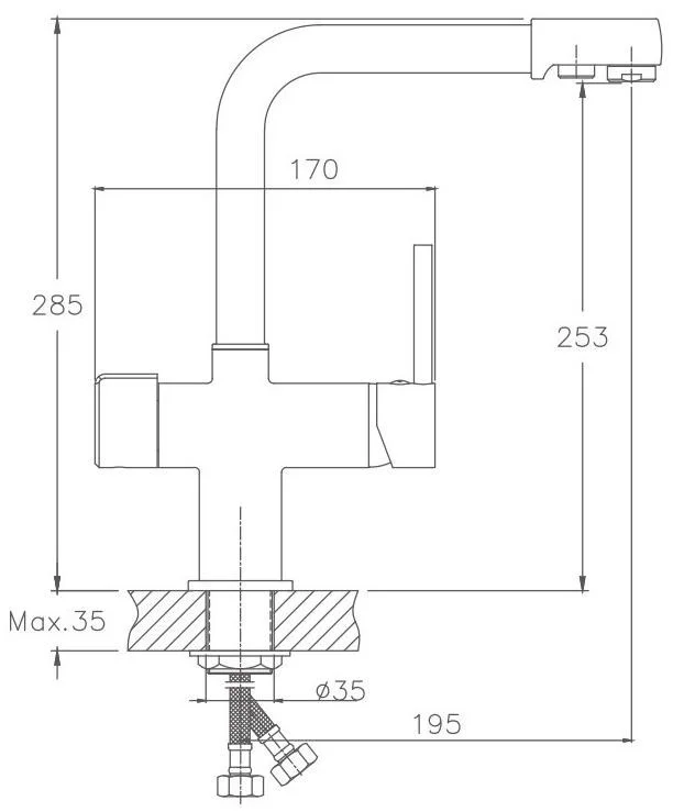 Смеситель для кухни бренда Haiba. Изготовлен из латуни. Картридж 35 мм. Укомплектован аэратором. Гибкая подводка 40 см. С поворотным изливом.