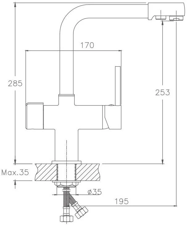 Смеситель для кухни бренда Haiba. Изготовлен из латуни. Картридж 35 мм. Укомплектован аэратором. Гибкая подводка 40 см. С поворотным изливом.
