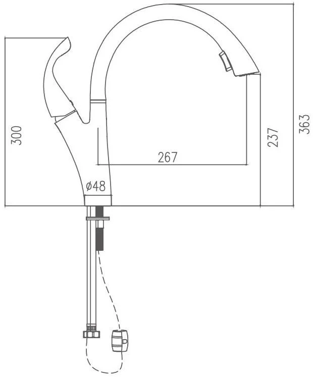 Смеситель для кухни бренда Haiba. Изготовлен из латуни. Картридж 35 мм. Укомплектован аэратором. Гибкая подводка 40 см. С поворотным изливом.