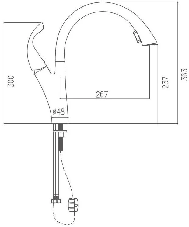 Смеситель для кухни бренда Haiba. Изготовлен из латуни. Картридж 35 мм. Укомплектован аэратором. Гибкая подводка 40 см. С поворотным изливом.