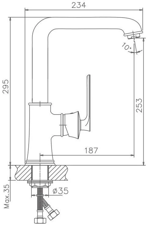 Смеситель для кухни бренда Haiba. Изготовлен из латуни. Картридж 35 мм. Укомплектован аэратором. Гибкая подводка 40 см. С поворотным изливом.