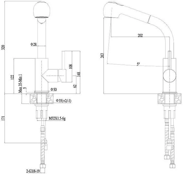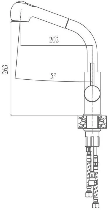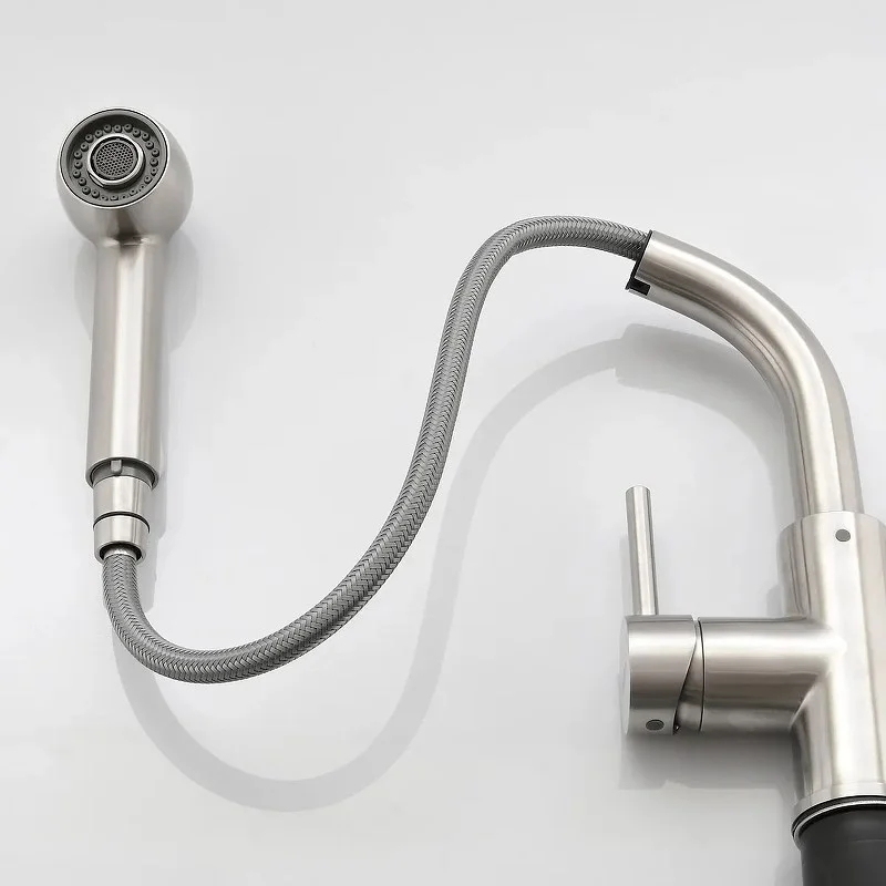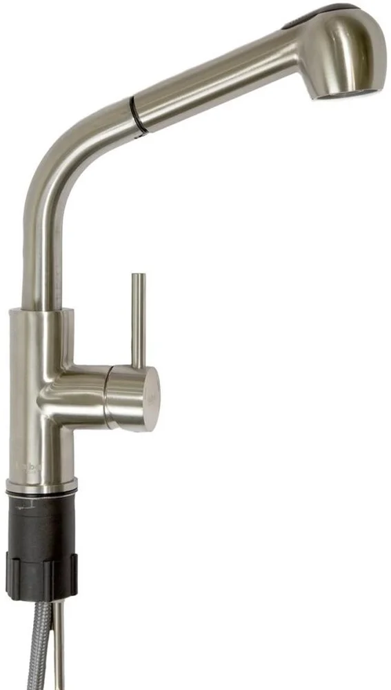 Смеситель для кухни бренда Haiba. Изготовлен из нержавеющей стали. Картридж 35 мм. Укомплектован аэратором. Гибкая подводка 40 см. С поворотным изливом.