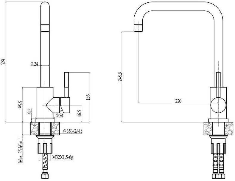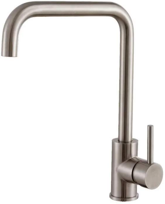 Смеситель для кухни бренда Haiba. Изготовлен из нержавеющей стали. Картридж 35 мм. Укомплектован аэратором. Гибкая подводка 40 см. С поворотным изливом.