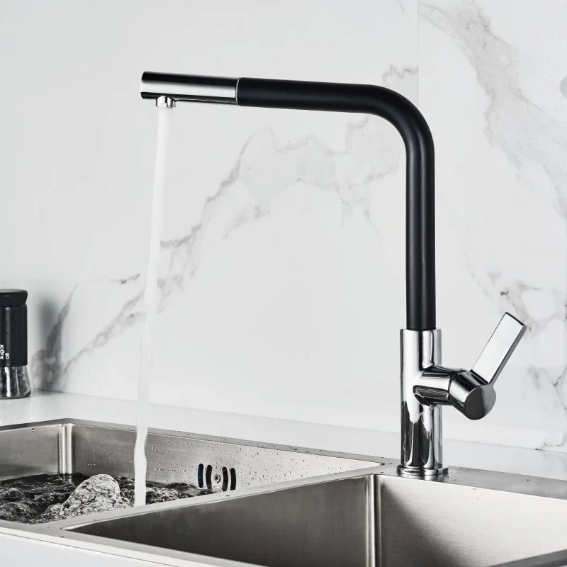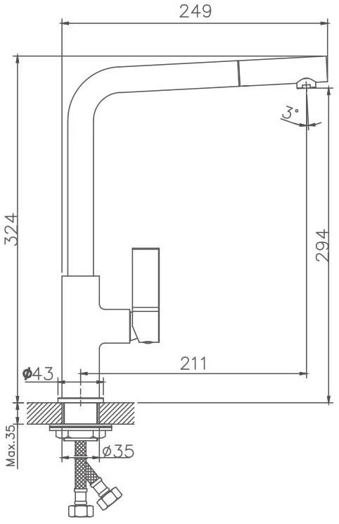 Смеситель для кухни бренда Haiba. Изготовлен из латуни. Картридж 35 мм. Укомплектован аэратором. Гибкая подводка 40 см. С поворотным изливом.