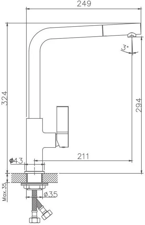 Смеситель для кухни бренда Haiba. Изготовлен из латуни. Картридж 35 мм. Укомплектован аэратором. Гибкая подводка 40 см. С поворотным изливом.