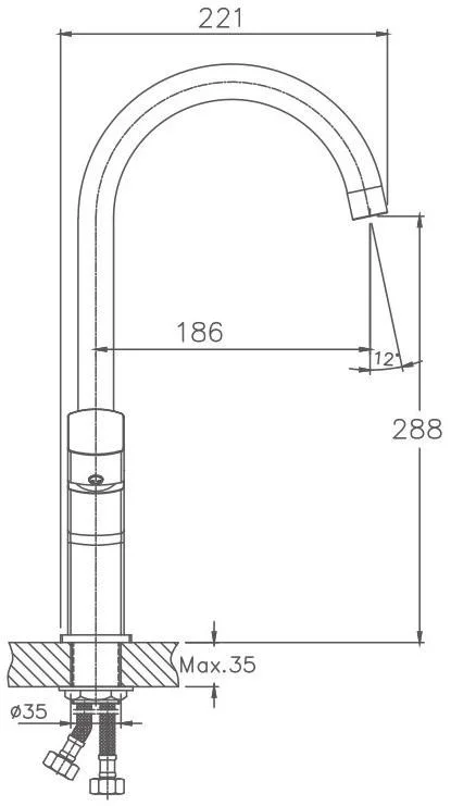 Смеситель для кухни бренда Haiba. Изготовлен из латуни. Картридж 25 мм. Укомплектован аэратором. Гибкая подводка 40 см. С поворотным изливом.