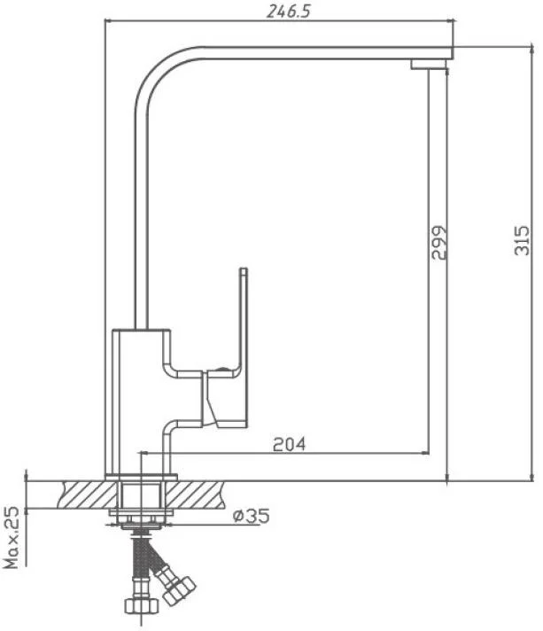 Смеситель для кухни бренда Haiba. Изготовлен из латуни. Картридж 35 мм. Укомплектован аэратором. Гибкая подводка 45 см. С поворотным изливом.