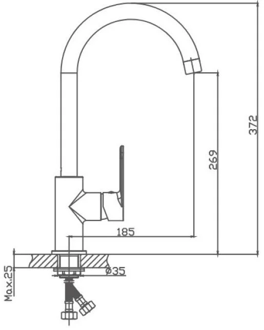 Смеситель для кухни бренда Haiba. Изготовлен из латуни. Картридж 35 мм. Укомплектован аэратором. Гибкая подводка 45 см. С поворотным изливом.