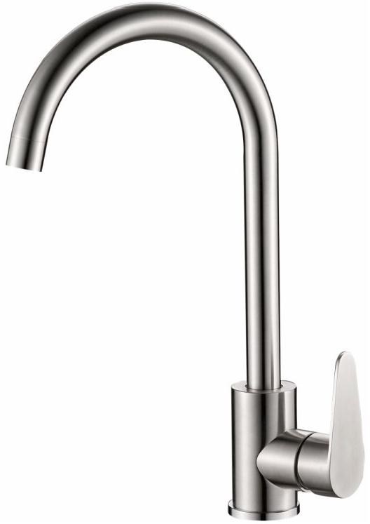 Смеситель для кухни бренда Haiba. Изготовлен из нержавеющей стали. Картридж 35 мм. Укомплектован аэратором. Гибкая подводка 40 см. С поворотным изливом.