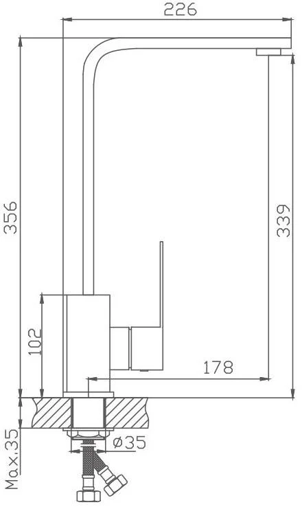 Смеситель для кухни бренда Haiba. Изготовлен из нержавеющей стали. Картридж 35 мм. Укомплектован аэратором. Гибкая подводка 40 см. С поворотным изливом.