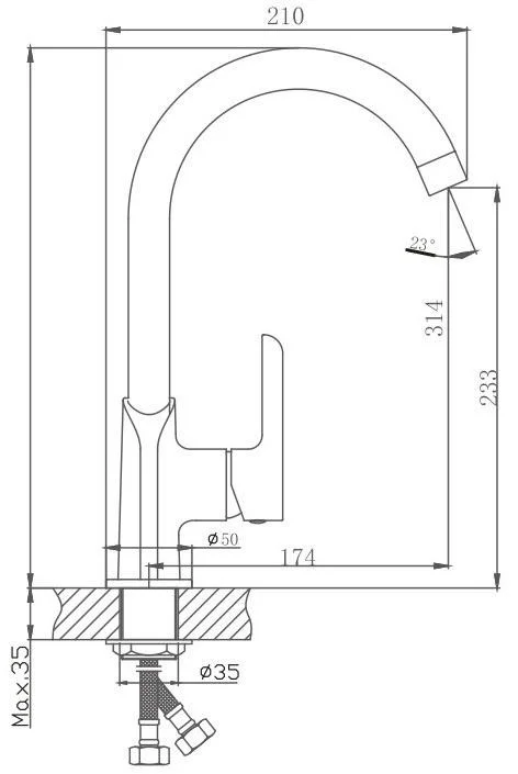 Смеситель для кухни бренда Haiba. Изготовлен из латуни. Картридж 35 мм. Укомплектован аэратором. Гибкая подводка 45 см. С поворотным изливом.