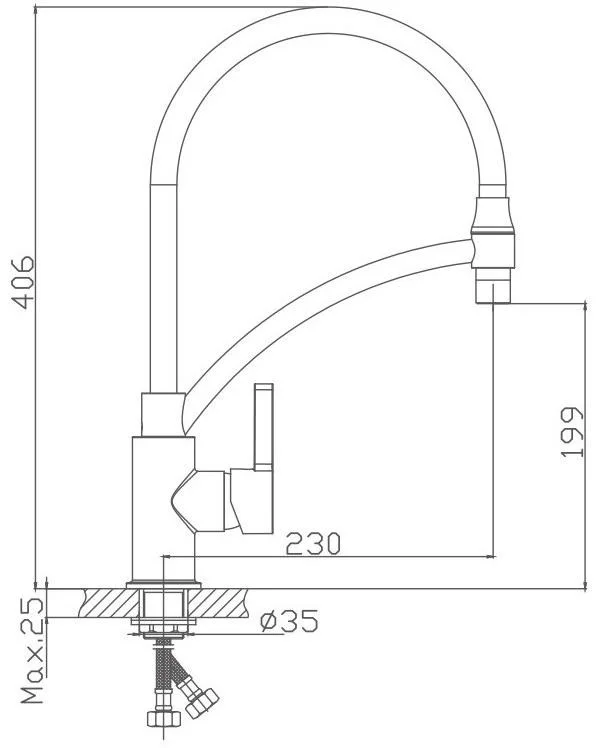 Смеситель для кухни бренда Haiba. Изготовлен из латуни. Картридж 35 мм. Укомплектован аэратором. Гибкая подводка 40 см. С поворотным изливом.