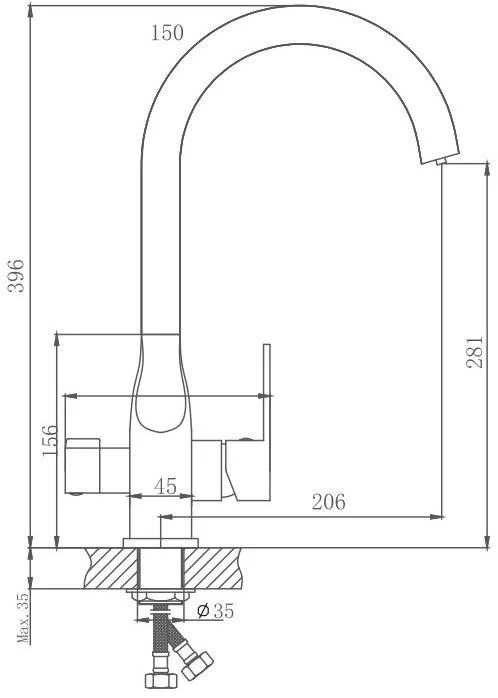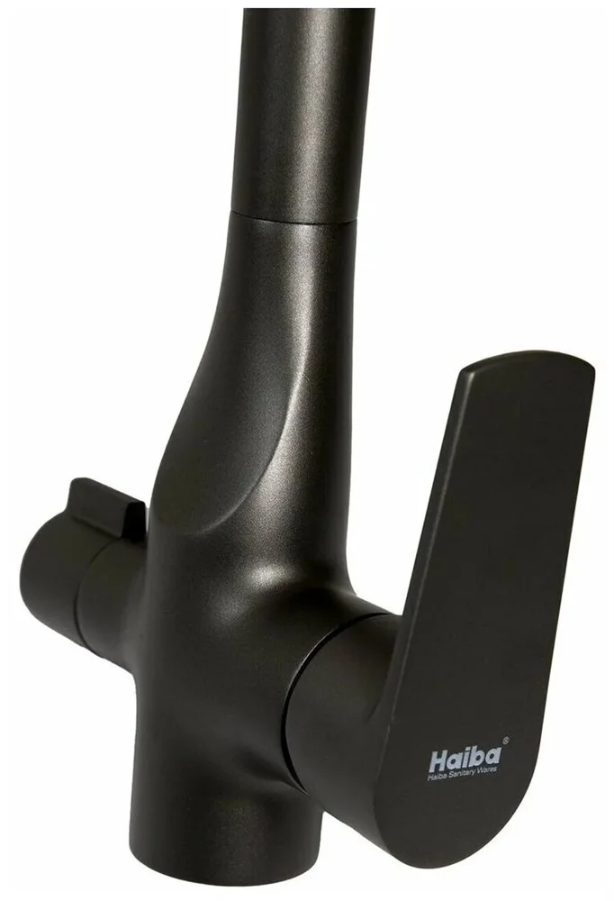 Смеситель для кухни бренда Haiba. Изготовлен из латуни. Картридж 35 мм. Укомплектован аэратором. Гибкая подводка 45 см. С поворотным изливом. Есть подключение фильтра для воды.