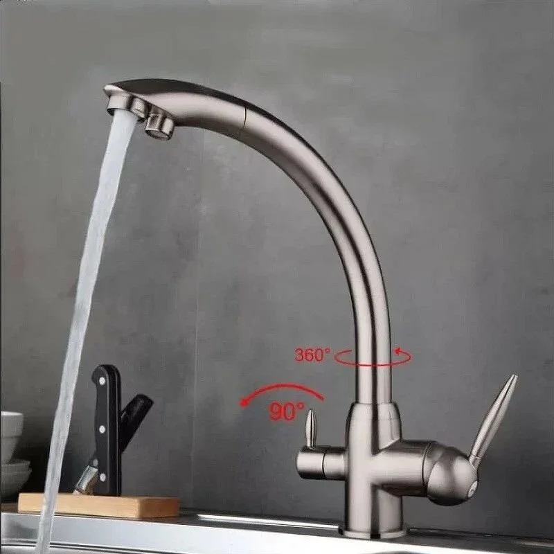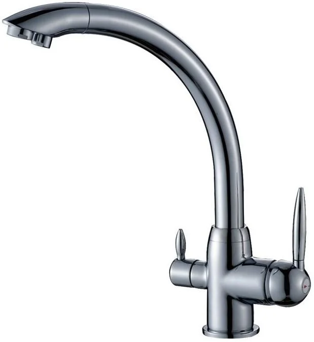 Смеситель для кухни бренда Haiba. Изготовлен из латуни. Картридж 35 мм. Укомплектован аэратором. Гибкая подводка 40 см. С поворотным изливом.