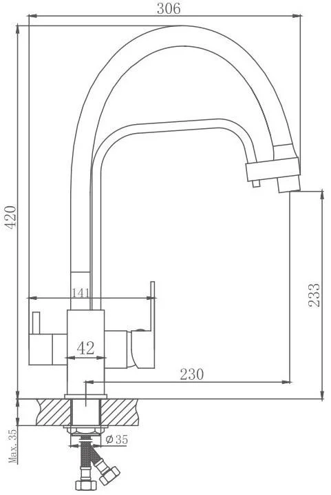 Смеситель для кухни бренда Haiba. Изготовлен из латуни. Картридж 35 мм. Укомплектован аэратором. Гибкая подводка 40 см. С поворотным гибким изливом.